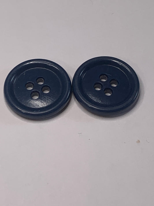 Vintage 2 Round Plastic Buttons, 4 Holes, Blue, 1.8 cm, New/Old Stock