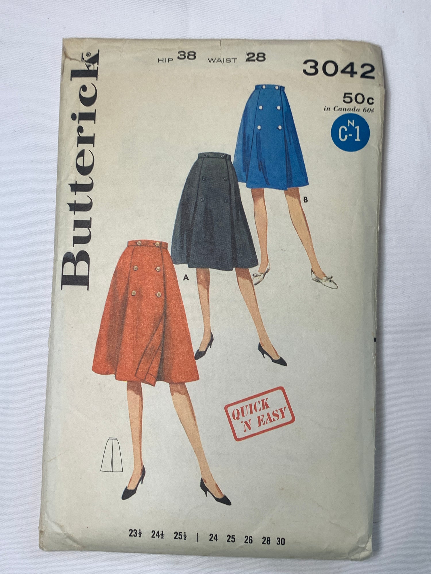 Butterick Sewing Pattern 3042 Misses'/Junior Wrap Skirt, Waist 28, Cut, Vintage 1950