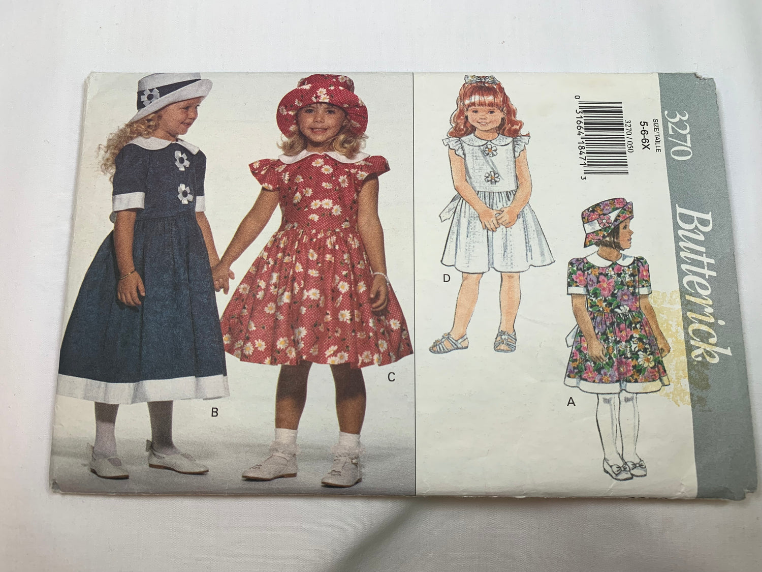 Butterick Sewing Pattern 3270 Girls' Dress, Two Lengths, Collar, Semi-Fitted, Dirndl Skirt, ,Ruffles, Zipper, Tie Ends, Size 5-6X, Cut, Vintage 1994