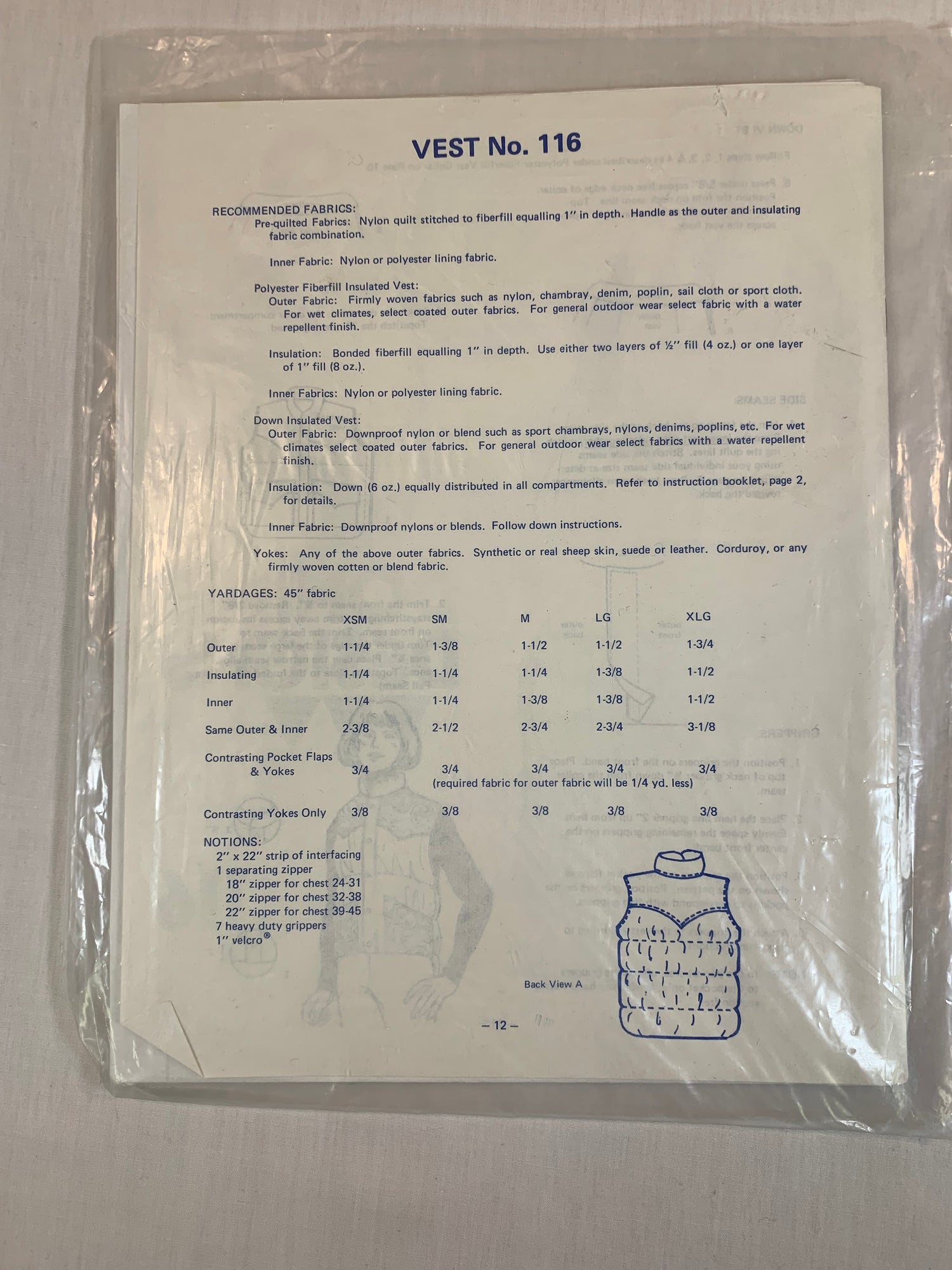 Donner Designs #116 Misses' Men's Quilted Vest, Size 24-45