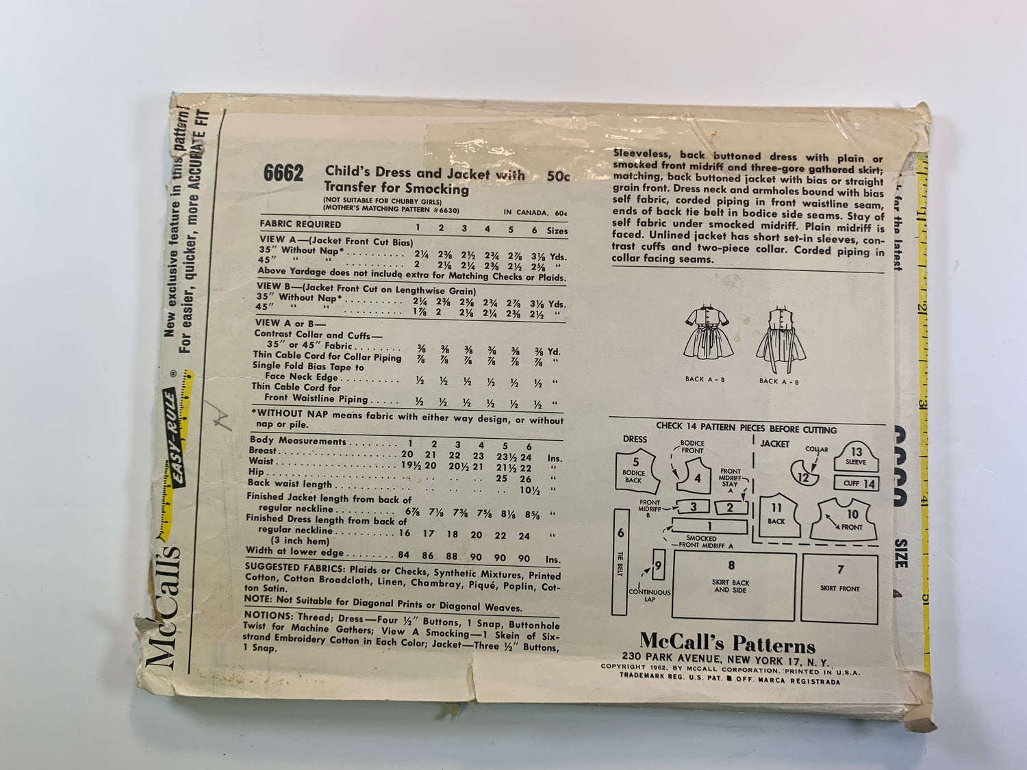 McCall's 6662 Girls' Dress, Jacket, Size 4, Cut, Vintage 1962