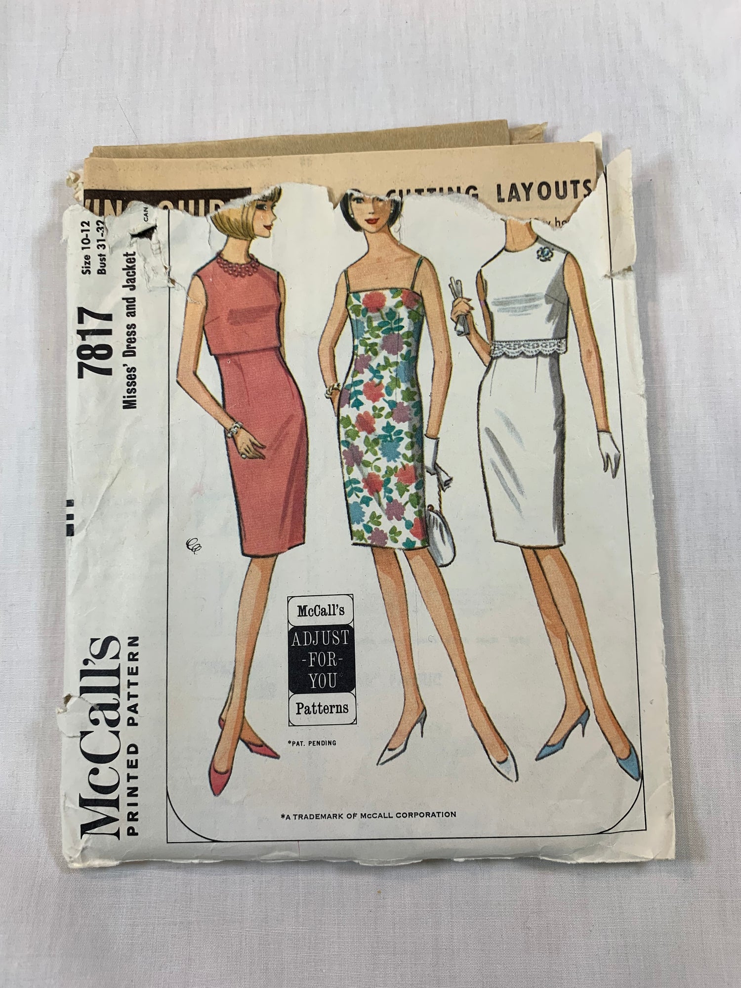 McCall's 7817 Misses' Dresses. Size 10-12, Cut, Vintage 1965