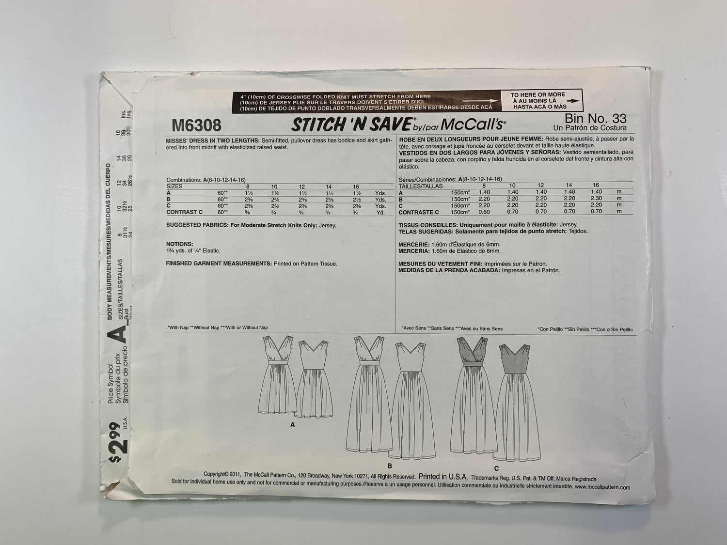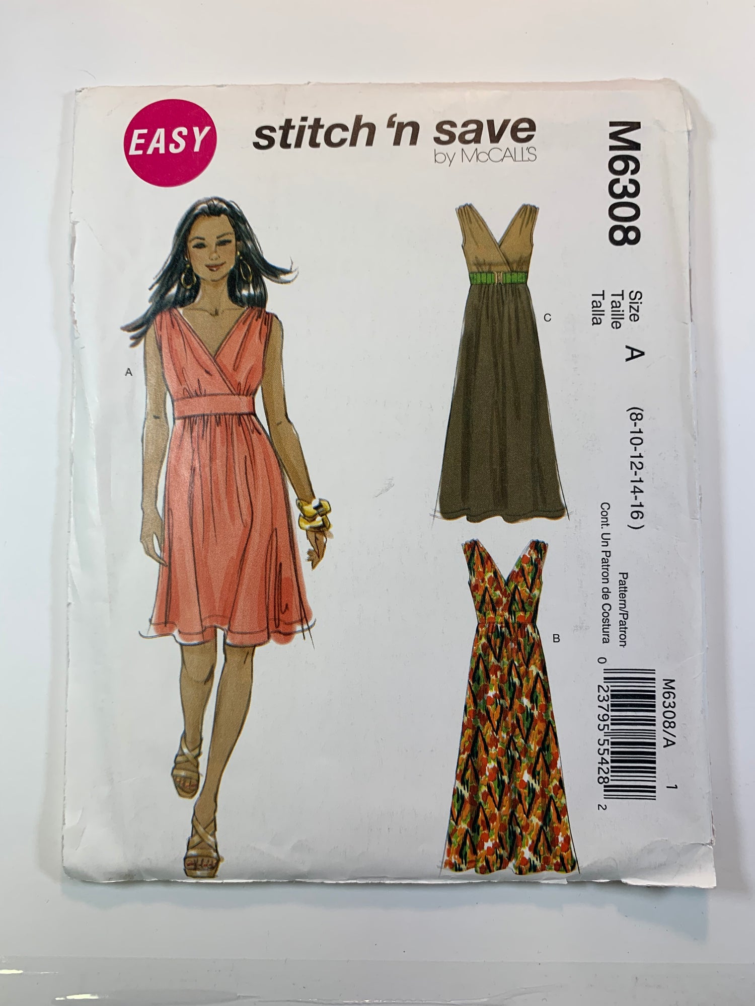 McCall's Stitch 'N Save M6308 Misses' Dresses, Size 8-16, Cut, 2011