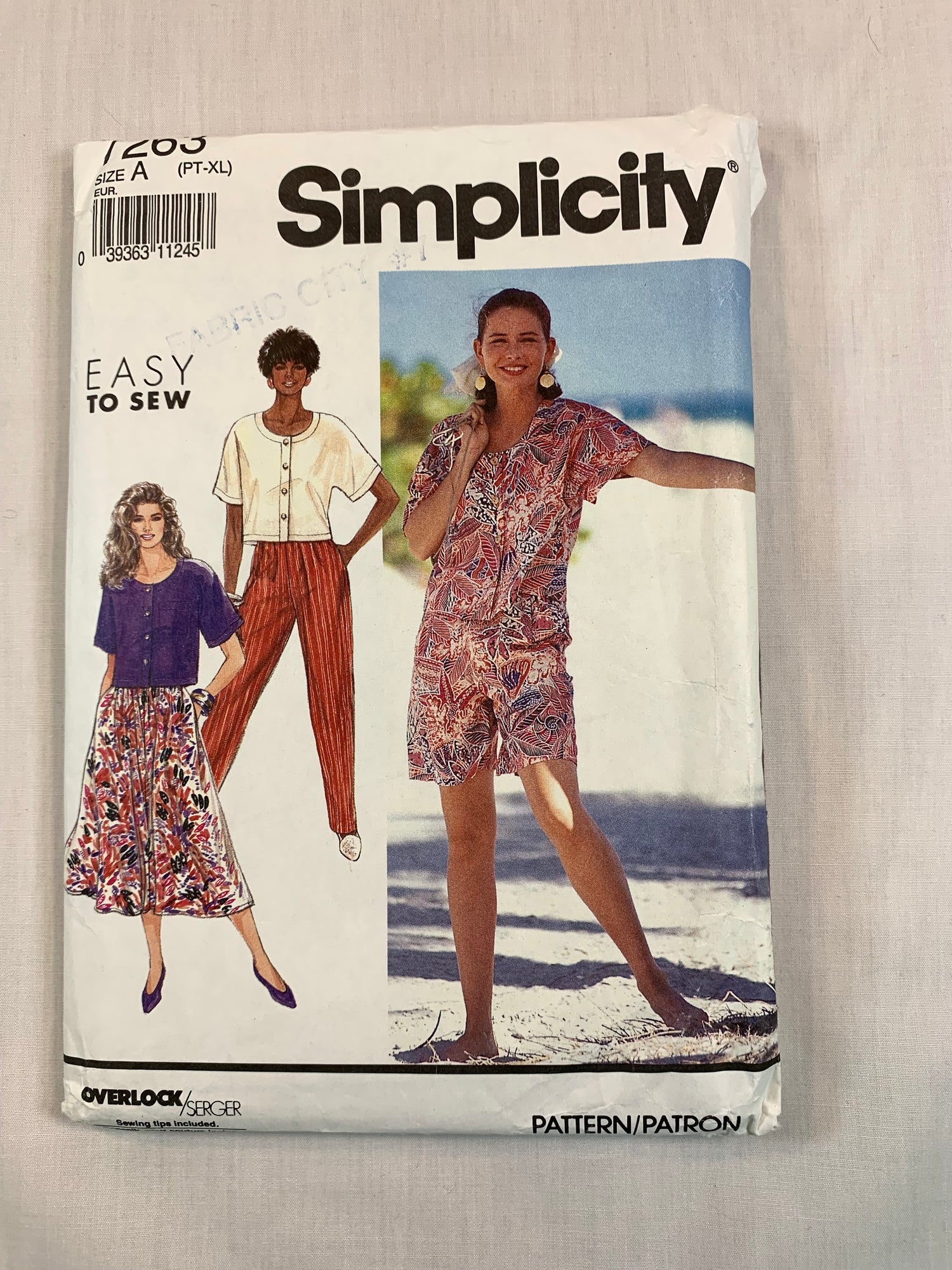 Simplicity 7263 Misses' Skirts, Pants, Shorts, Tops, Size 6-16, Cut, Vintage 1991