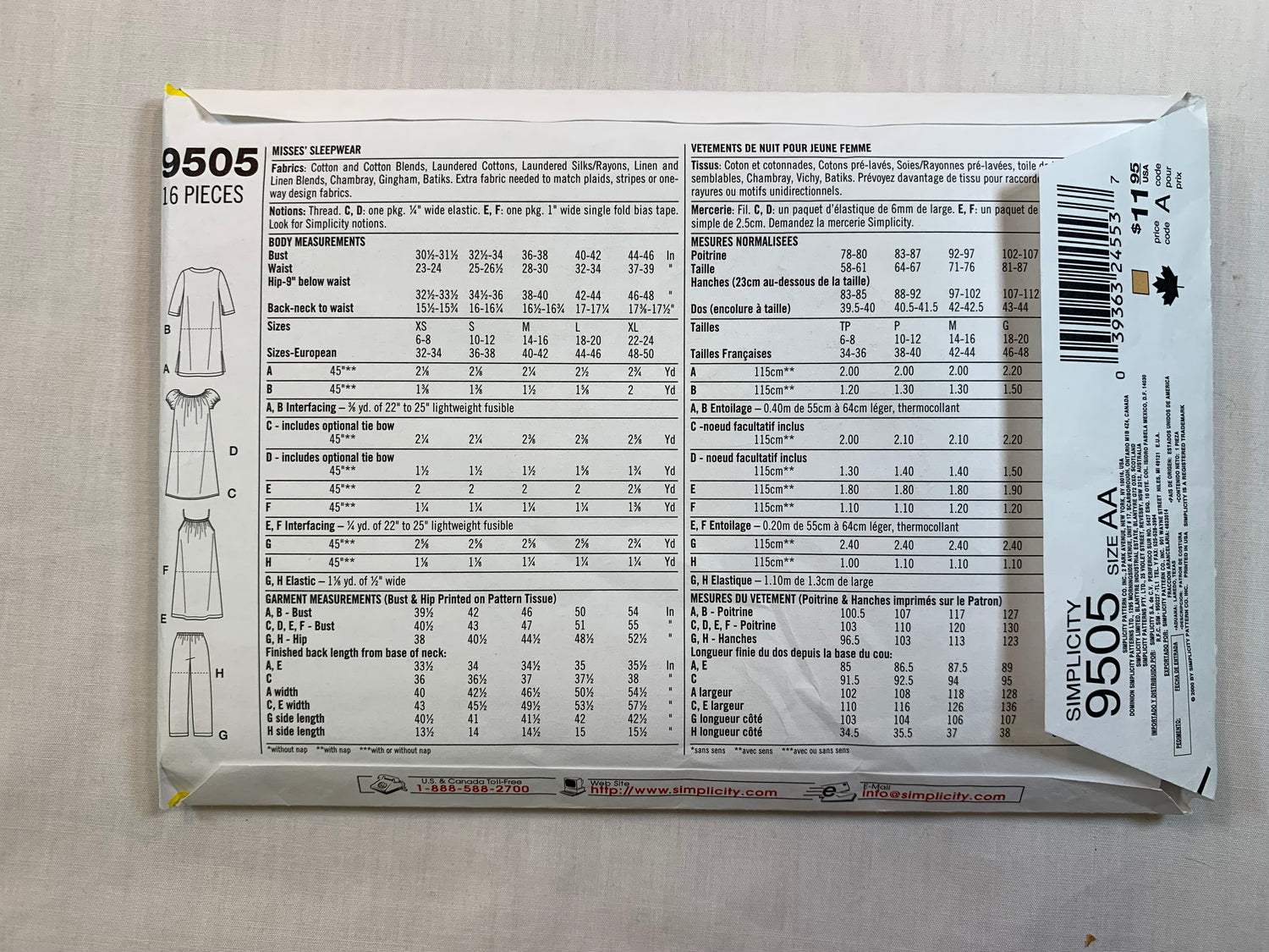 Simplicity 9505 Girls' Nightgown, Pajamas, Top, Pants, Shorts, Nightshirt, Size 6-16 Uncut, 2000