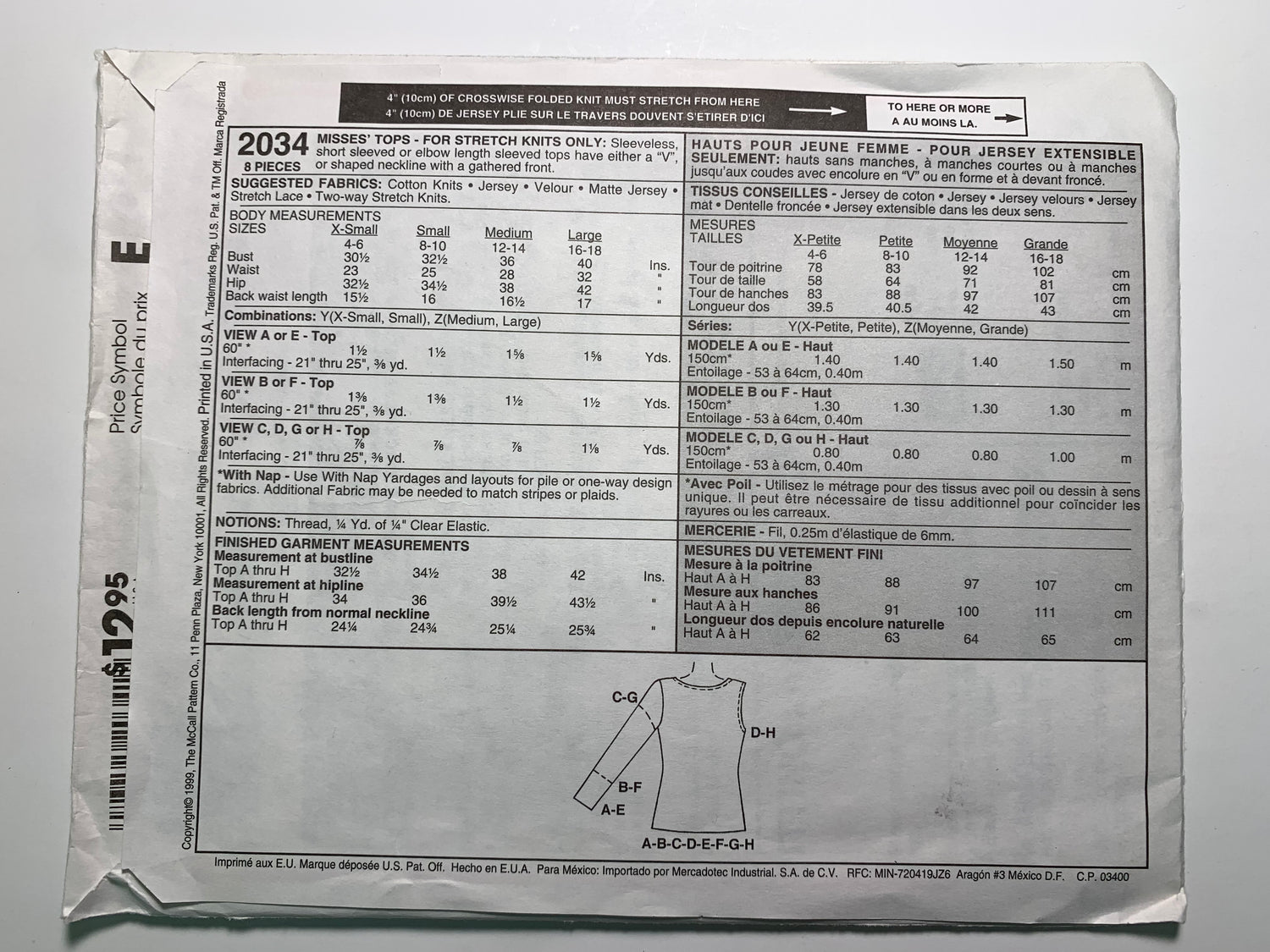 McCall's 2034 Misses' Tops, Size 4-10, Uncut, Vintage 1999