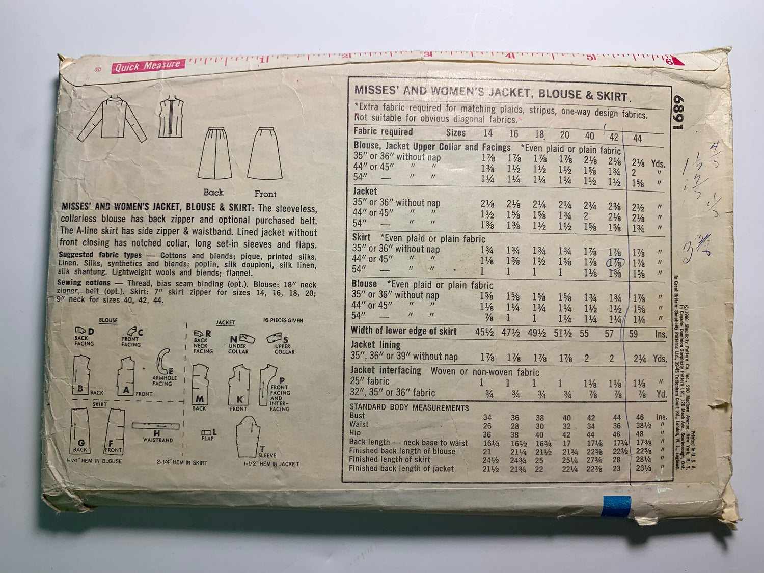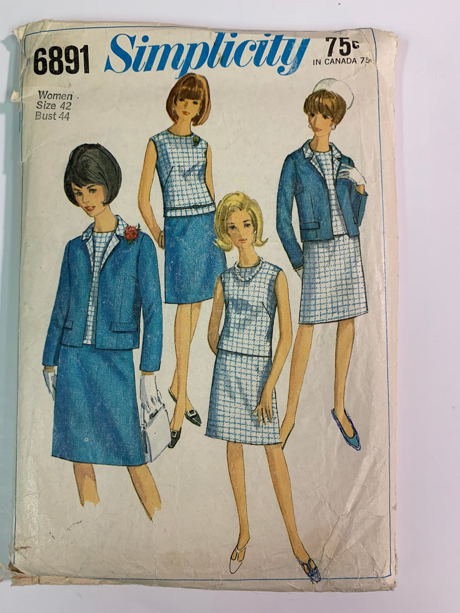 Simplicity 6891 Misses' Jacket, Blouse, Skirt, Size 42, Cut, Vintage 1966