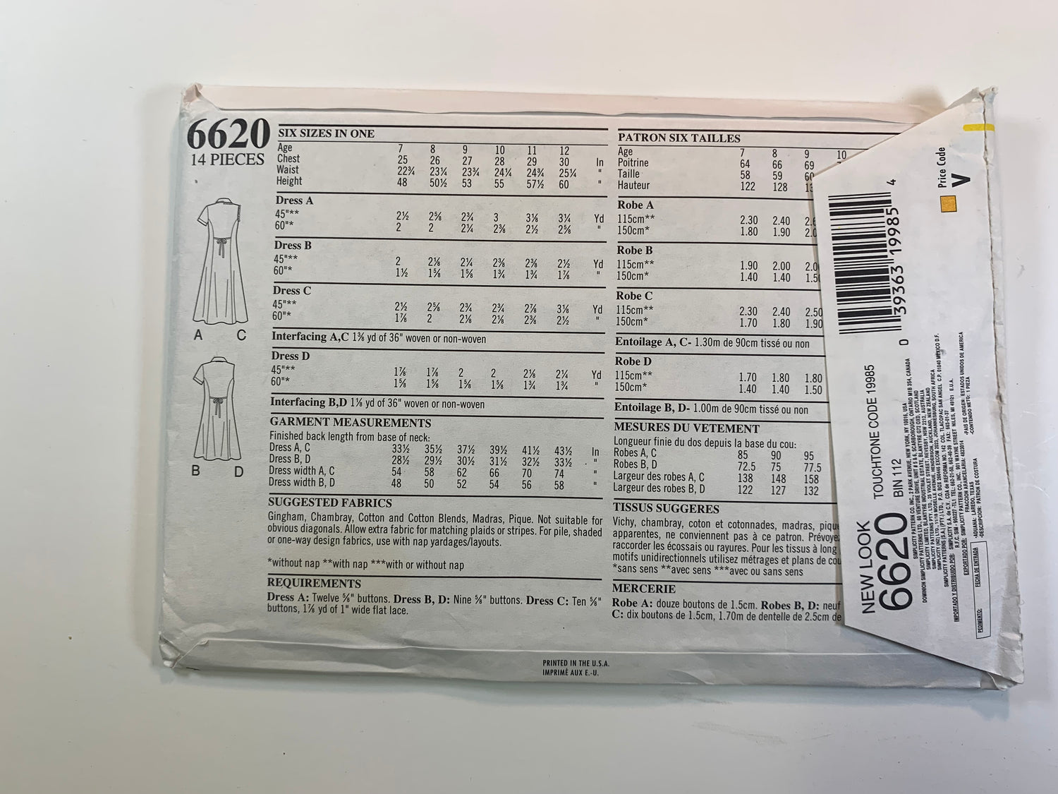 Simplicity New Look 6620 Girls' Dress, Size 9-14, Uncut